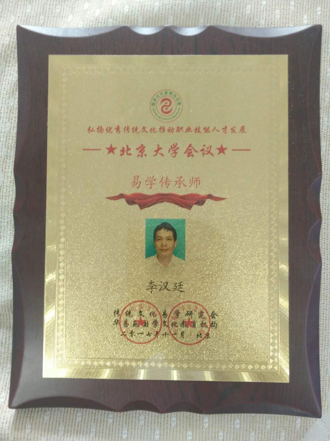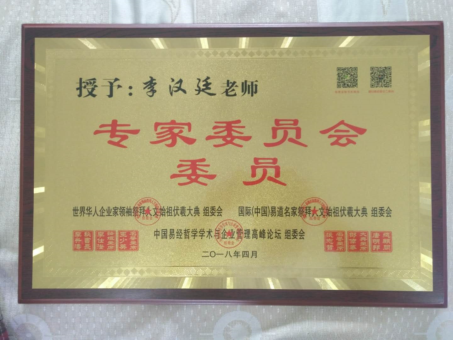 李汉廷中国易经哲学学术与企业管理高峰论坛专家委员会委员,第七届长三角易学联盟特邀专家,长三角易经研究院专家,传统文化易学研究会易学传承师,精通四柱八字,六爻,玄空风水,八宅风水,姓名学等,并兼任北京,上海,江苏,安微,等地企业和个人风水顾问。